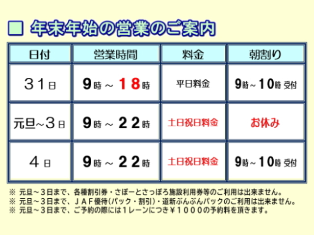 年末年始の営業時間のご案内